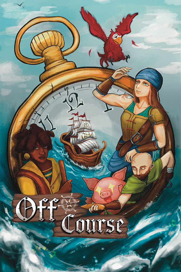 Off Course is a story-heavy puzzle game with a short time loop where a player controls one of three characters at each iteration of the loop. The character's actions in that iteration are recorded and replayed in the next iteration, creating a co-op experience in a single-player game.